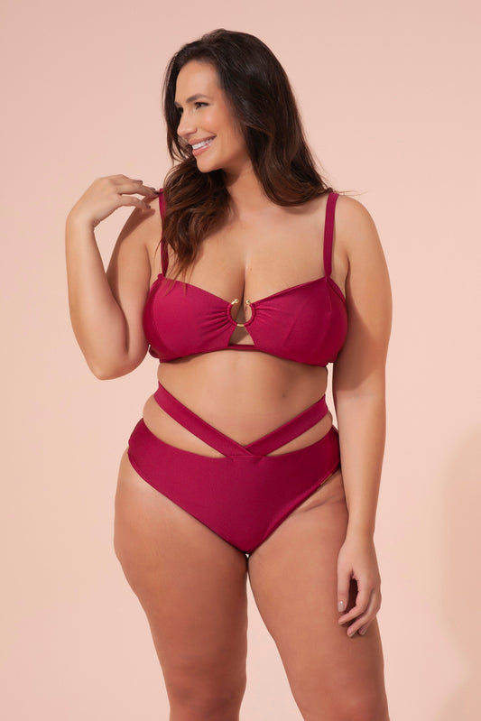 BIKINI TOP WITH PADDED CUPS AND METAL DETAILING